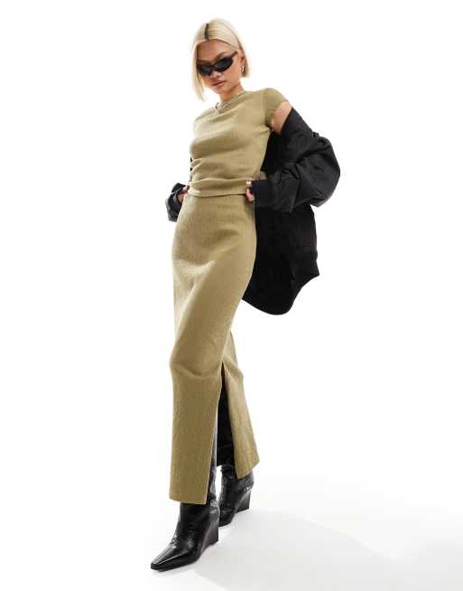 COLLUSION - Jupe longue texturée d'ensemble - Kaki