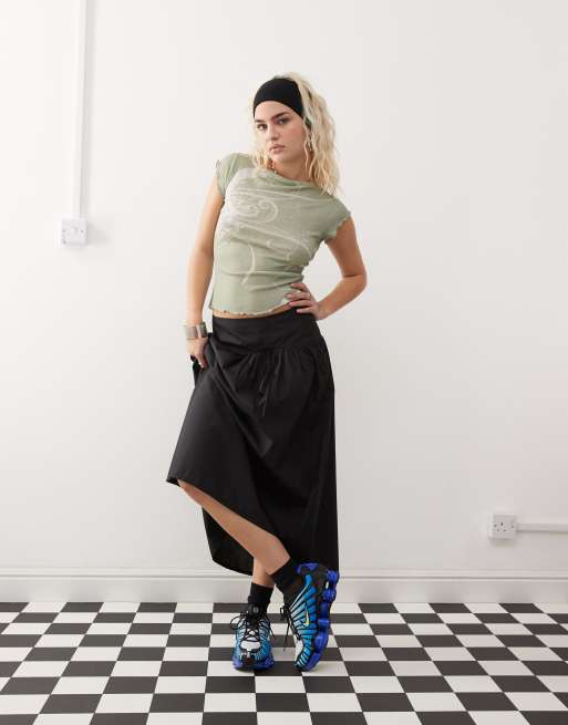 COLLUSION - Jupe mi-longue à taille tombante - Noir