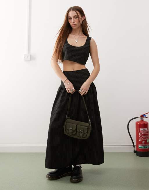 COLLUSION - Jupe mi-longue d'ensemble habillée à taille basse et rayures fines - Noir