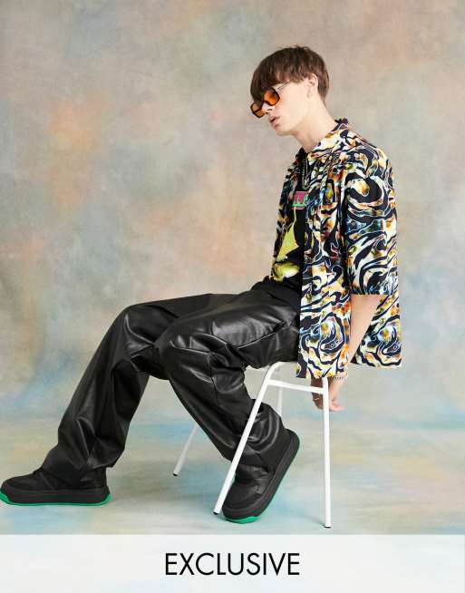 COLLUSION - Pantalon baggy à taille basse en PU - Noir