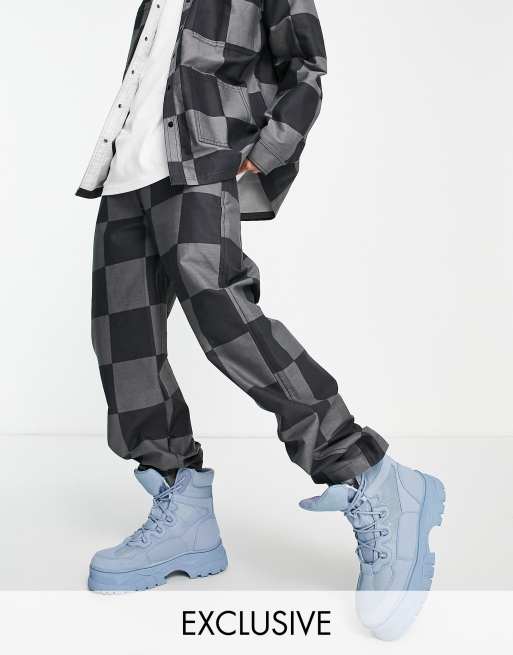 COLLUSION - Pantalon baggy oversize d'ensemble à damier style années 90 - Gris