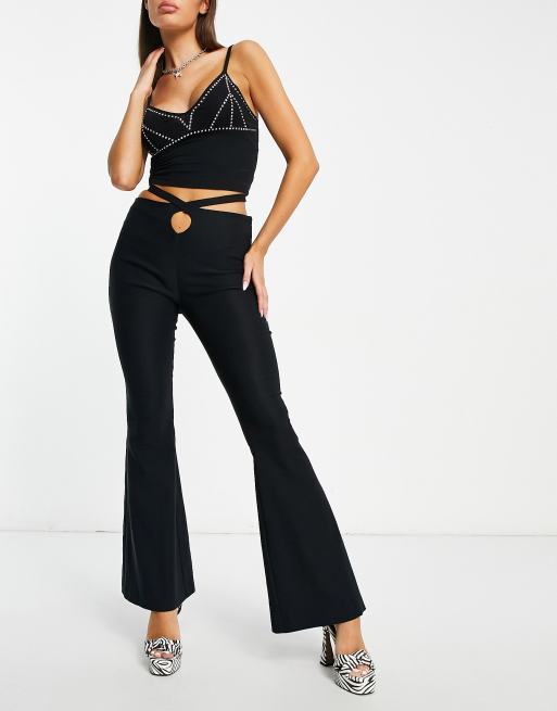 COLLUSION - Pantalon évasé en bengaline avec taille croisée - Noir