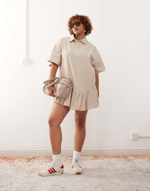 COLLUSION Plus - Robe chemise avec jupe plissée à carreaux - Neutre