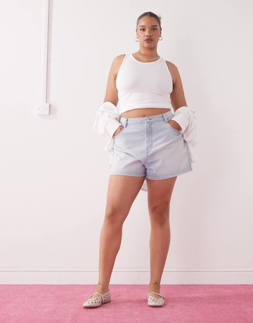 COLLUSION Plus - Short en jean ample - Délavage clair