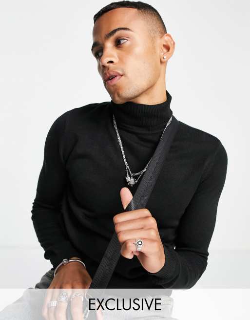 COLLUSION - Pull col roulé en maille - Noir