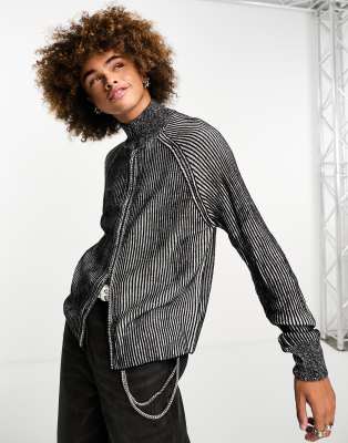 COLLUSION - Pull en maille tressée à fermeture éclair et double curseur - Noir