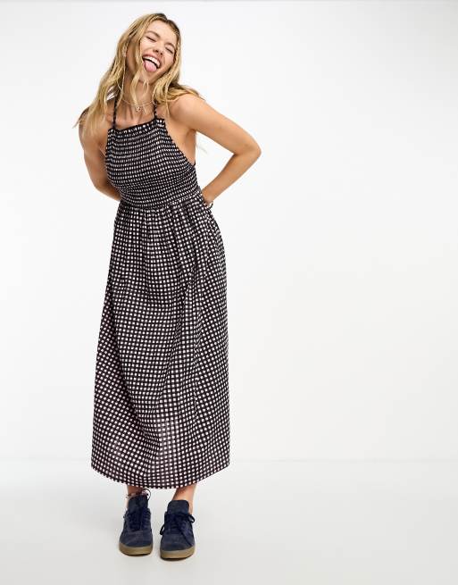 COLLUSION - Robe à carreaux longue avec dos ouvert et lanières nouées - Rose