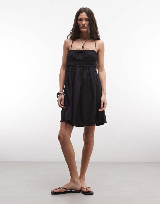 COLLUSION - Robe babydoll courte avec liens noués - Noir