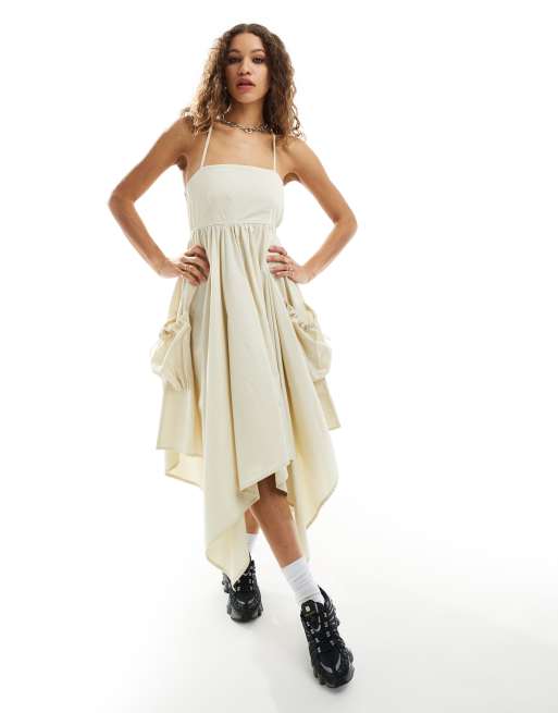 Collusion - Robe babydoll mi-longue fonctionnelle en coton avec ourlet foulard - Taupe