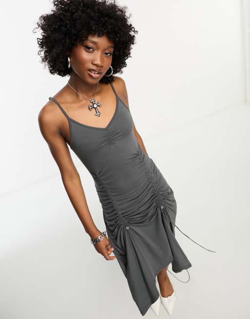 COLLUSION - Robe froncée mi-longue à bretelles fines - Gris