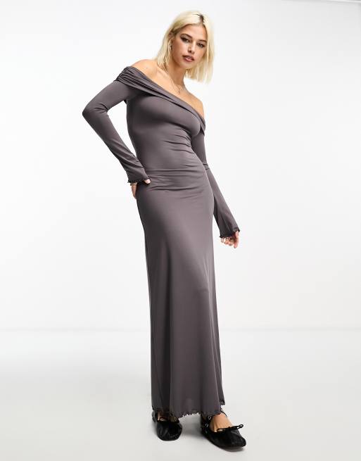 COLLUSION - Robe longue à encolure bardot - Gris