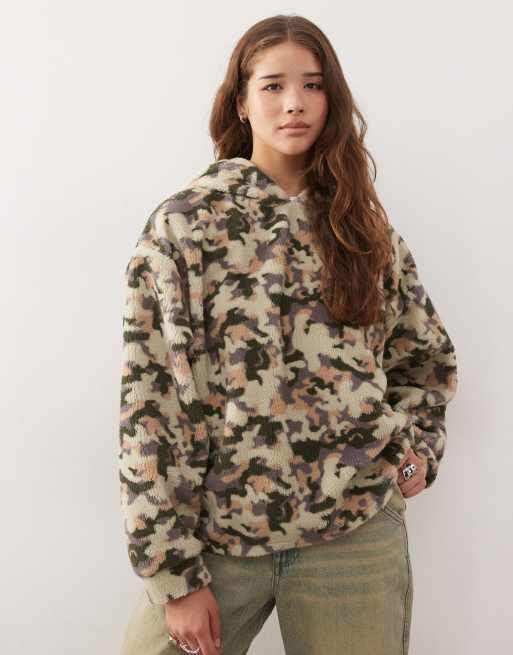 COLLUSION - Sweat à capuche à enfiler en imitation peau de mouton imprimé camouflage