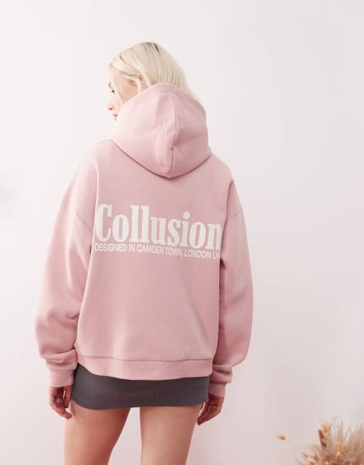 COLLUSION - Sweat à capuche d'ensemble avec logo - Rose clair