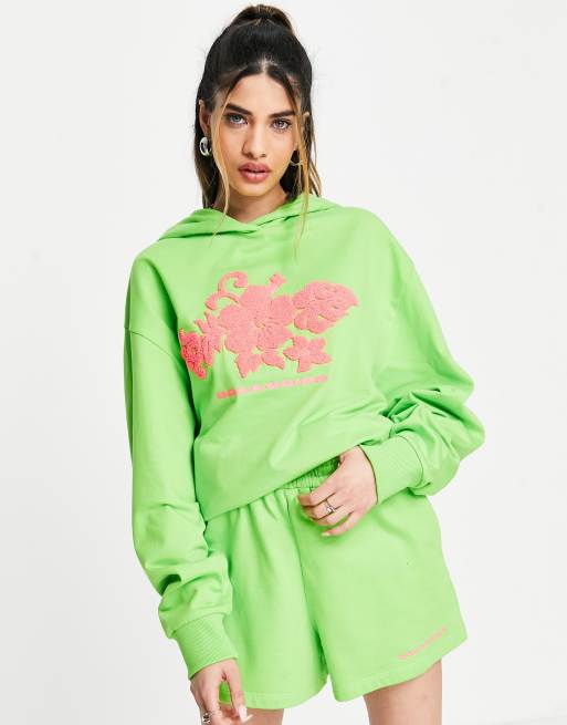 COLLUSION - Sweat à capuche oversize d'ensemble à imprimé hawaïen duveteux - Vert