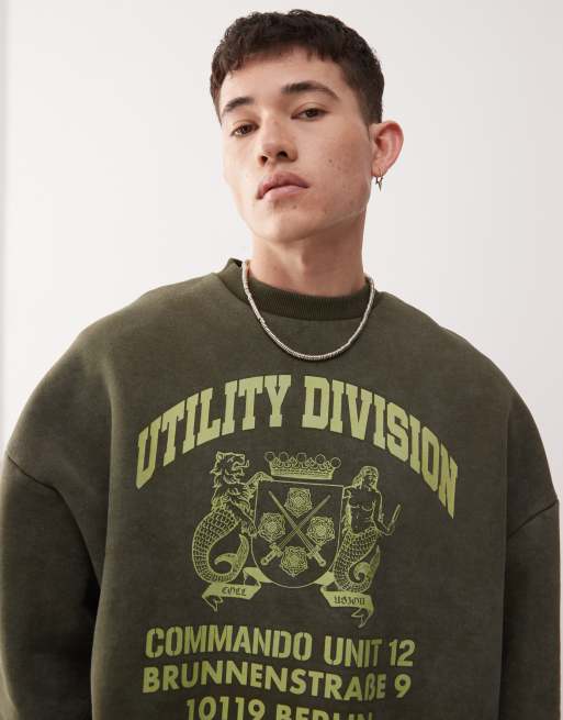 COLLUSION - Sweat coupe carrée à imprimé graphique - Vert délavé