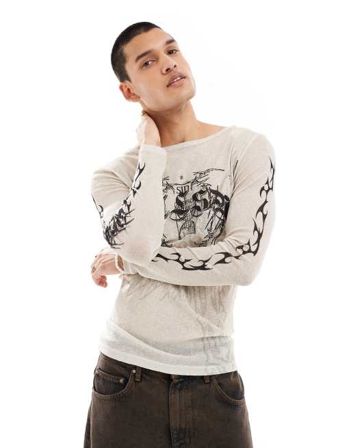 COLLUSION - T-shirt à encolure bateau et manches longues avec imprimés tatouage