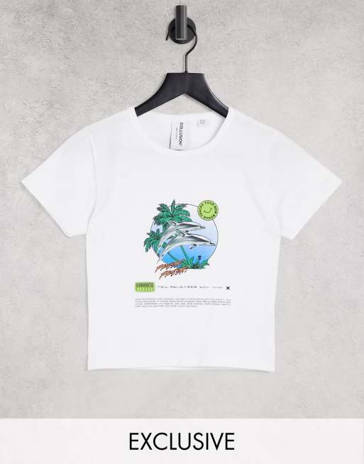 COLLUSION - T-shirt ajusté avec imprimé dauphin - Blanc