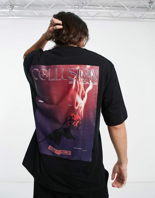COLLUSION - T-shirt avec imprimé magazine sur le devant - Noir