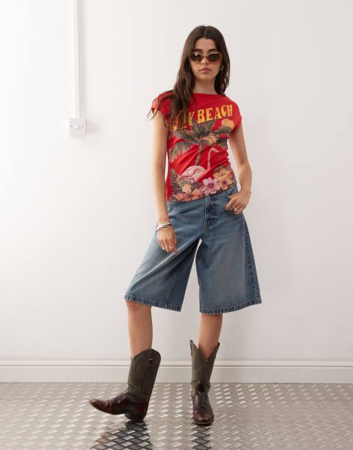 COLLUSION - T-shirt court à imprimé Bay Beach - Rouge