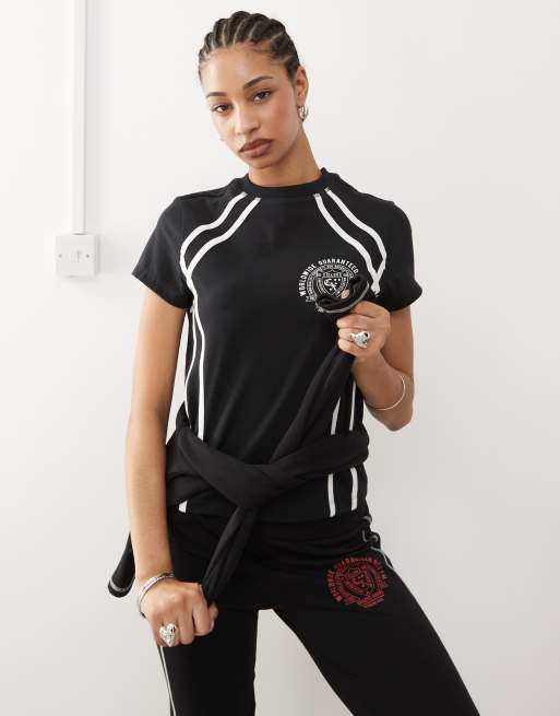 COLLUSION - T-shirt d'ensemble effet rétréci avec passepoils et imprimé style sport - Noir