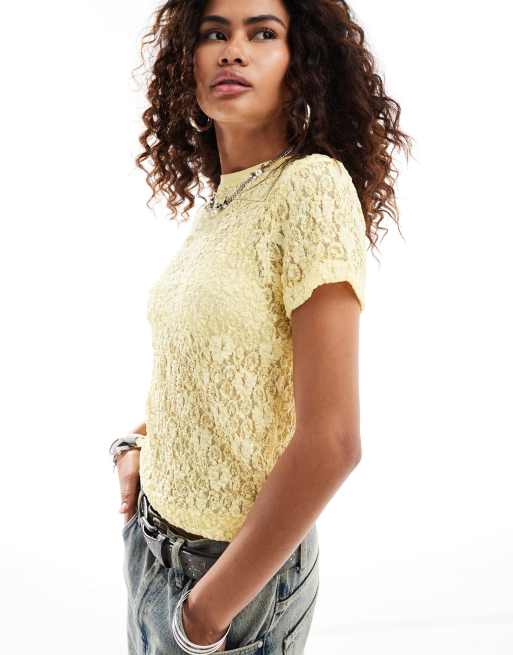 COLLUSION - T-shirt effet rétréci en dentelle - Jaune