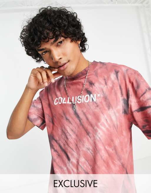 COLLUSION - T-shirt effet tie-dye à imprimé logo - Rouge