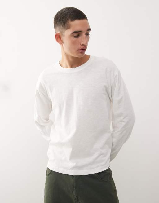 COLLUSION - T-shirt léger à manches longues en coton flammé - Blanc