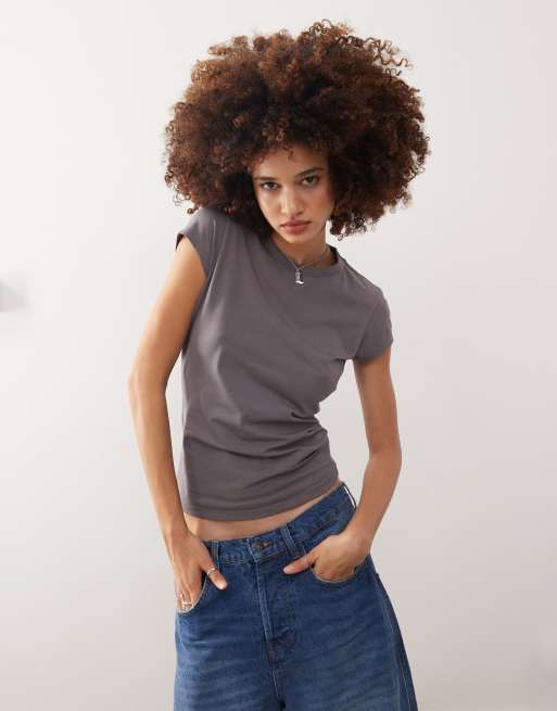 COLLUSION - T-shirt long ajusté à mancherons - Gris