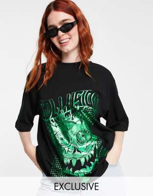 COLLUSION - T-shirt oversize à motif tête de mort holographique - Noir