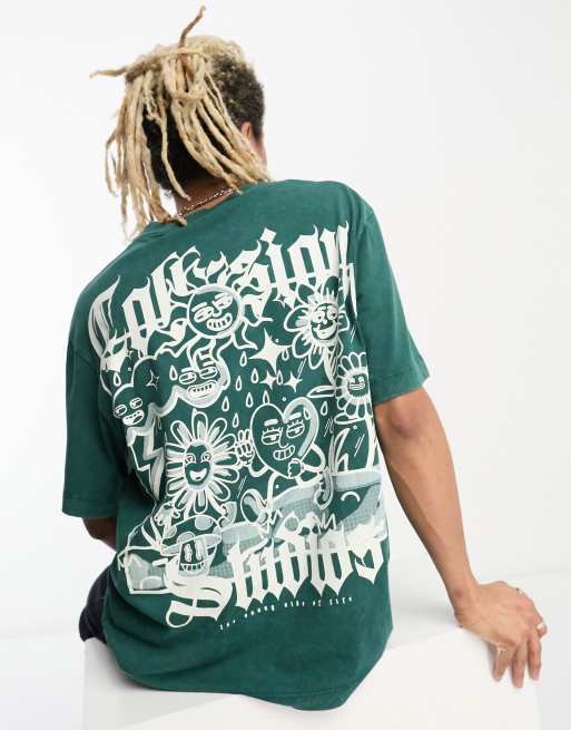 COLLUSION - T-shirt oversize imprimé griffonnage dans le dos - Vert