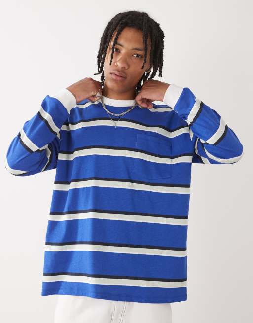 COLLUSION - T-shirt rayé à manches longues avec poche - Bleu