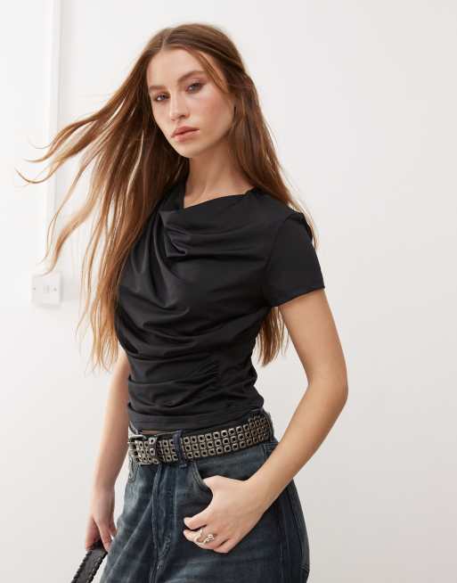 COLLUSION - Top près du corps à mancherons et col bénitier avec détails drapés - Noir