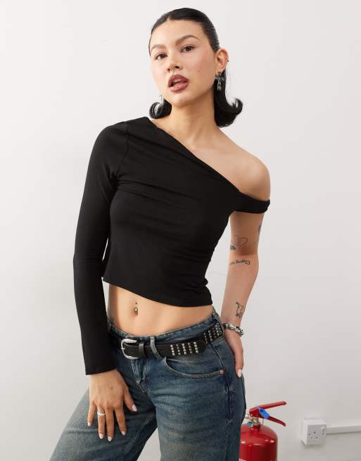COLLUSION - Top torsadé aux épaules à manches longues - Noir