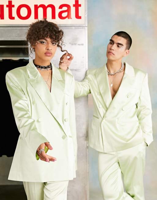 COLLUSION Unisex - Blazer d'ensemble en tissu satiné - Vert