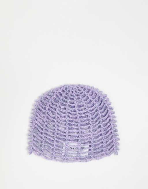 COLLUSION Unisex - Bonnet de festival pailleté en maille ajourée - Violet