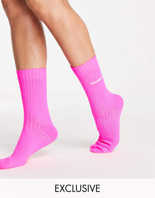 COLLUSION Unisex - Chaussettes à petit logo - Rose