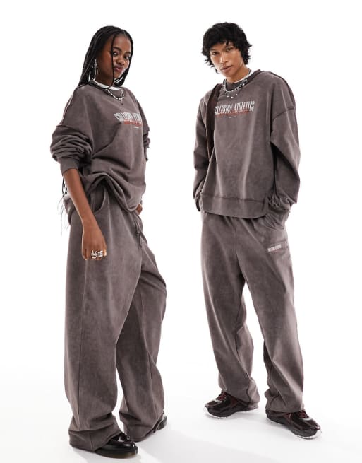 COLLUSION Unisex - Ensemble avec sweat et pantalon de jogging style universitaire - Marron