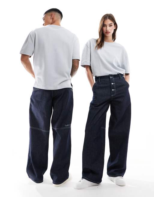 COLLUSION Unisex - Jean style charpentier baggy en denim brut