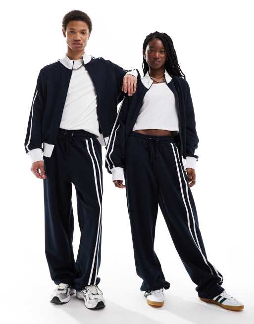 COLLUSION Unisex - Pantalon de jogging d'ensemble décontracté - Bleu marine et marron