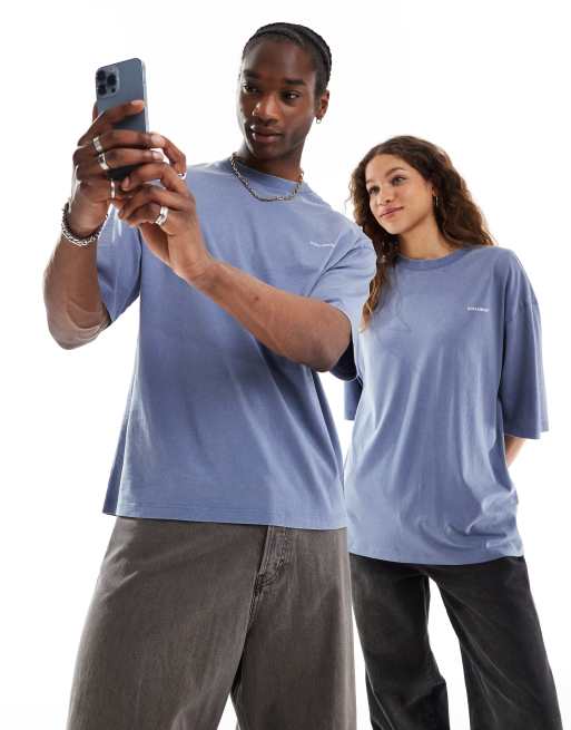 COLLUSION Unisex - T-shirt à logo - Bleu délavé