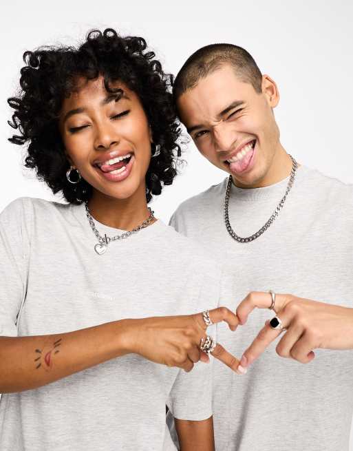 COLLUSION Unisex - T-shirt à logo - Gris chiné