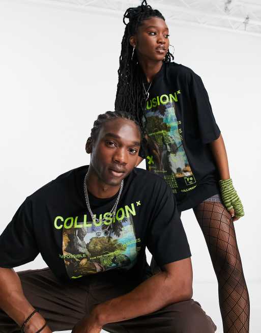 COLLUSION Unisex - T-shirt avec imprimé magazine à l'avant - Noir