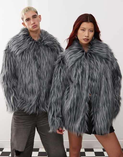 COLLUSION Unisex - Veste en fausse fourrure avec liserés contrastants - Gris