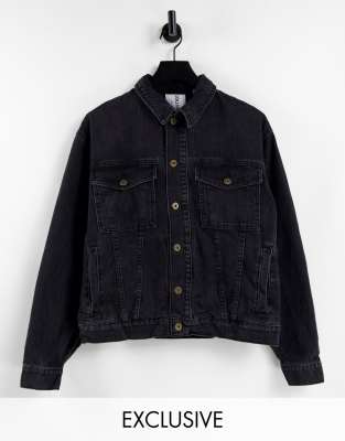 COLLUSION Unisex - Veste en jean oversize - Noir délavé