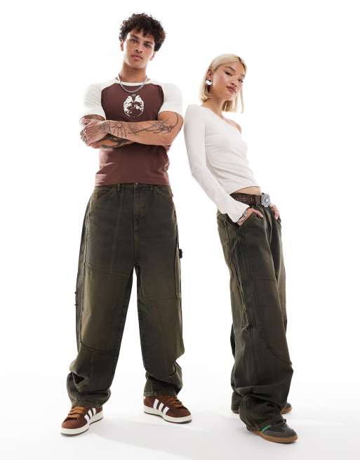COLLUSION Unisex - x001 - Jean ample effet patchwork - Bleu moyen délavé
