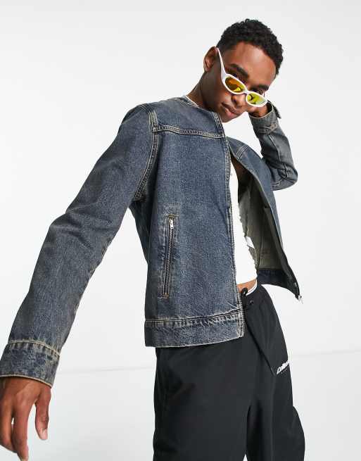 COLLUSION - Veste style motard en jean coupe années 2000 - Bleu