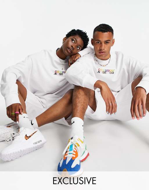 COLLUSION x EXIST LOUDLY - Sweat unisexe d'ensemble à enfiler avec détail brodé - Blanc