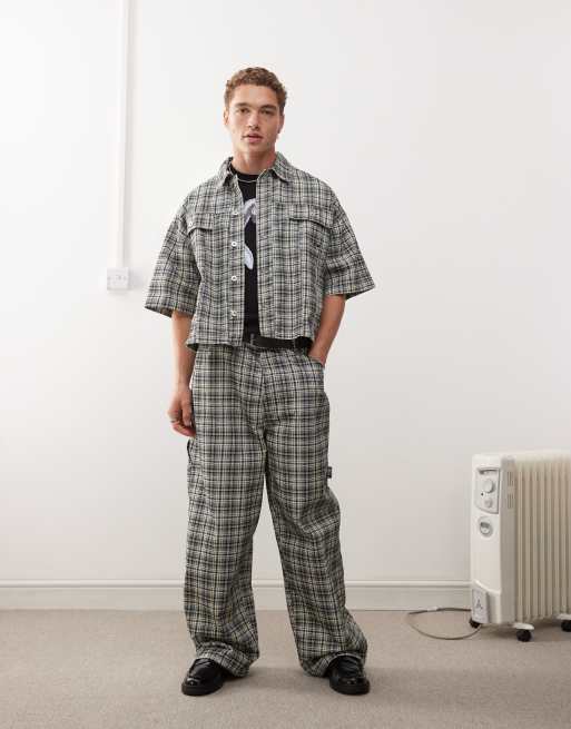 COLLUSION - x002 - Jean d'ensemble baggy à carreaux - Noir et blanc