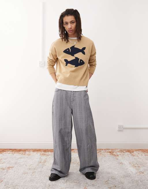 COLLUSION - X007 - Jean baggy XL - Gris à rayures