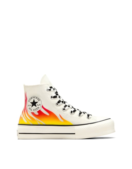 Converse - Chuck Taylor All Star Lift - Baskets montantes à semelle plateforme et imprimé flammes - Aigrette/rouge émail/noir